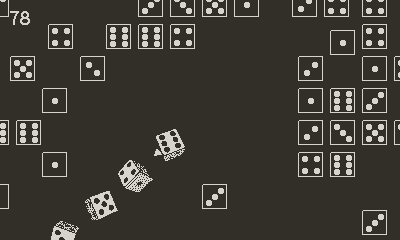 Week 6-7: Having add a debug song test, I thought maybe I should add a debug menu to test the dice sprites as well, otherwise all my generated dice images are mostly wasted (players mostly see only 48 out of the 4096 images in the dice grid). But rather than doing that, I thought I would implement a full dice simulator. It took a bit of code to fake physics but the end result worked well. So at week 6, this dice game finally allowed players to roll dice.